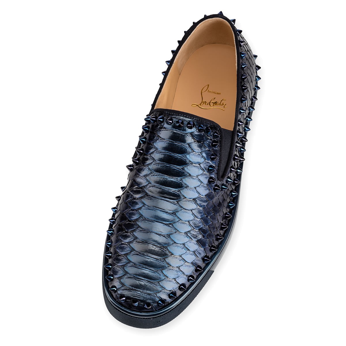 Hang loose in luxury this season with “Pik Boat Flat”, your guaranteed go-to for days off duty. In sumptuous hand painted quartz emaille python and metallic spikes, this slip-on style brings a signature Christian Louboutin touch to your more casual looks.