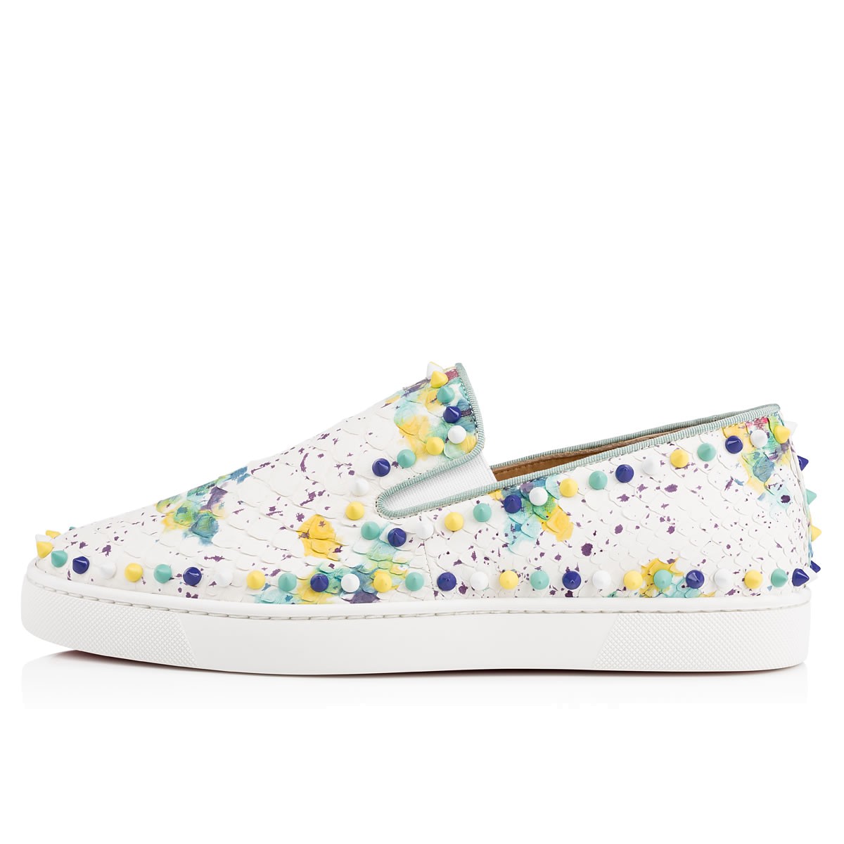 Hang loose in luxury this season with “Pik Boat,” your guaranteed go-to for days of leisure. In hand-painted matte ‘bloom’ python with matching spikes, this slip-on style brings a signature Christian Louboutin touch to your more casual looks.