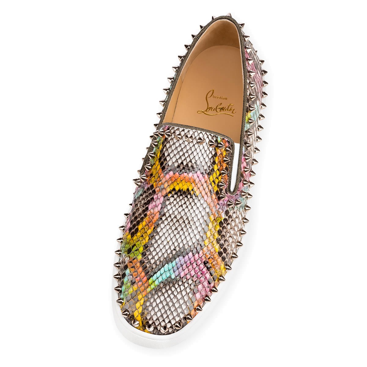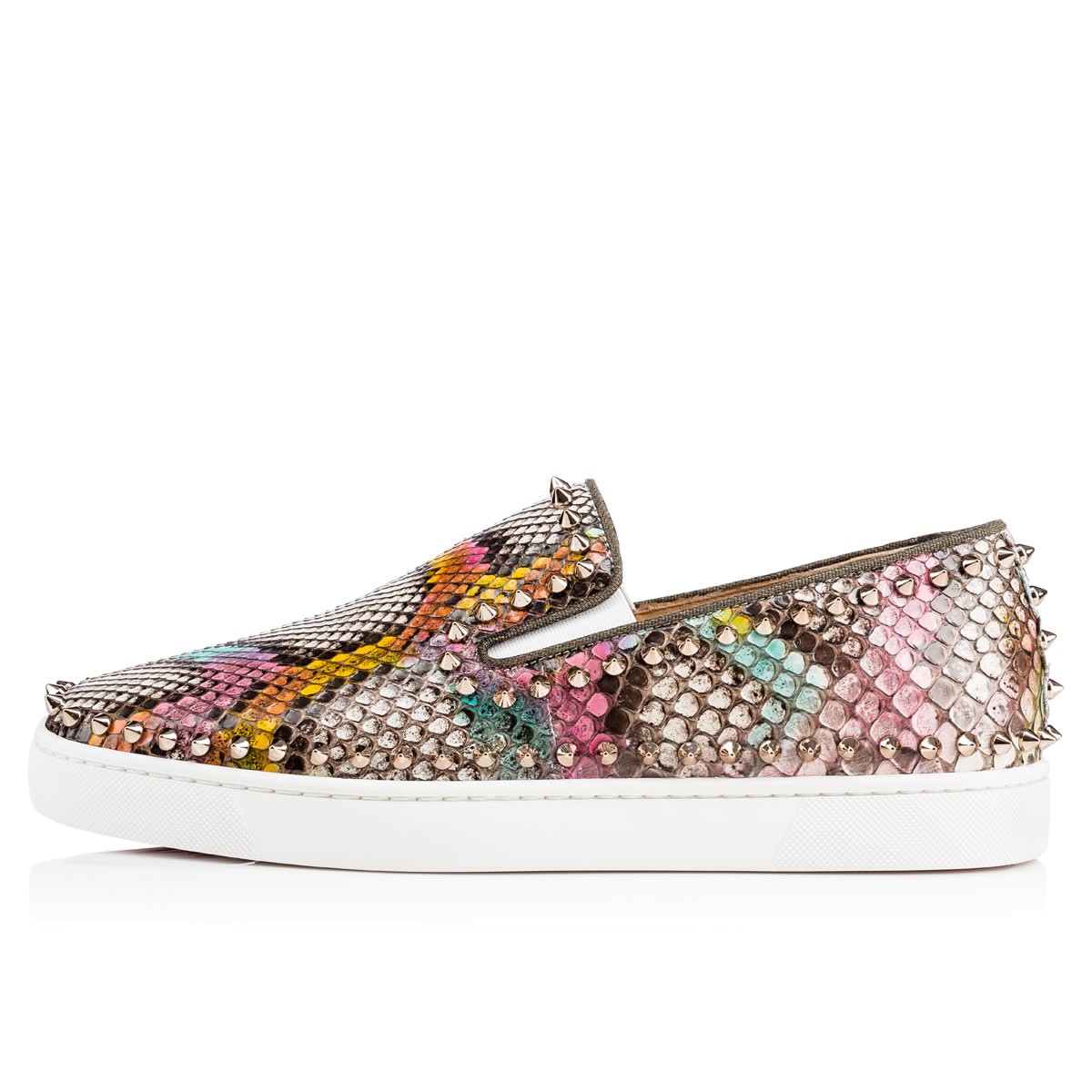 Hang loose in luxury this season with “Pik Boat,” your guaranteed go-to for days of leisure. In hand-painted python kaa with colombe metal spikes, this slip-on style brings a signature Christian Louboutin touch to your more casual looks.