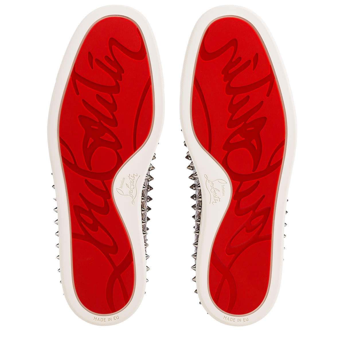 Hang loose in luxury this season with “Pik Boat Flat”, your guaranteed go-to for days off duty. In sumptuous roccia python printed eve glitter and gunmetal spikes, this slip-on style brings a signature Christian Louboutin touch to your more casual looks.