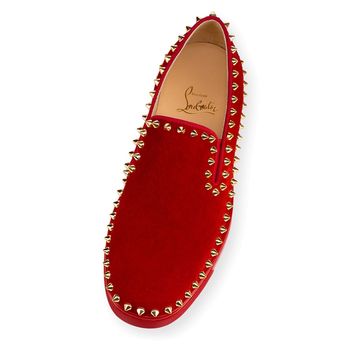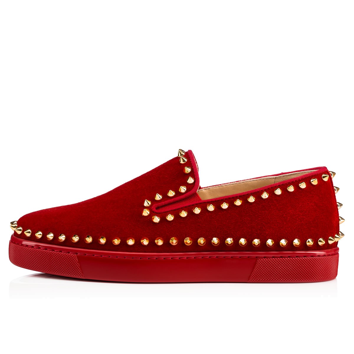 “Pik Boat’s” slip-on silhouette makes for a superb casual style. In flamenco suede and gold spikes, this pair brings a vibrant new inspiration to your leisure looks.