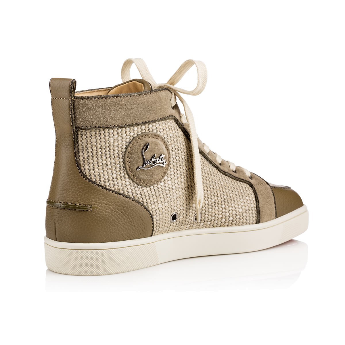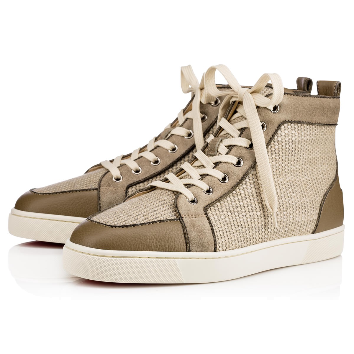 “Rantus Orlato Flat” is a hightop sneaker of choice for his thoroughly masculine structure. In poivre vert woven linen with matching suede and grained leather trim, he is a sporty look with a hint of luxe.