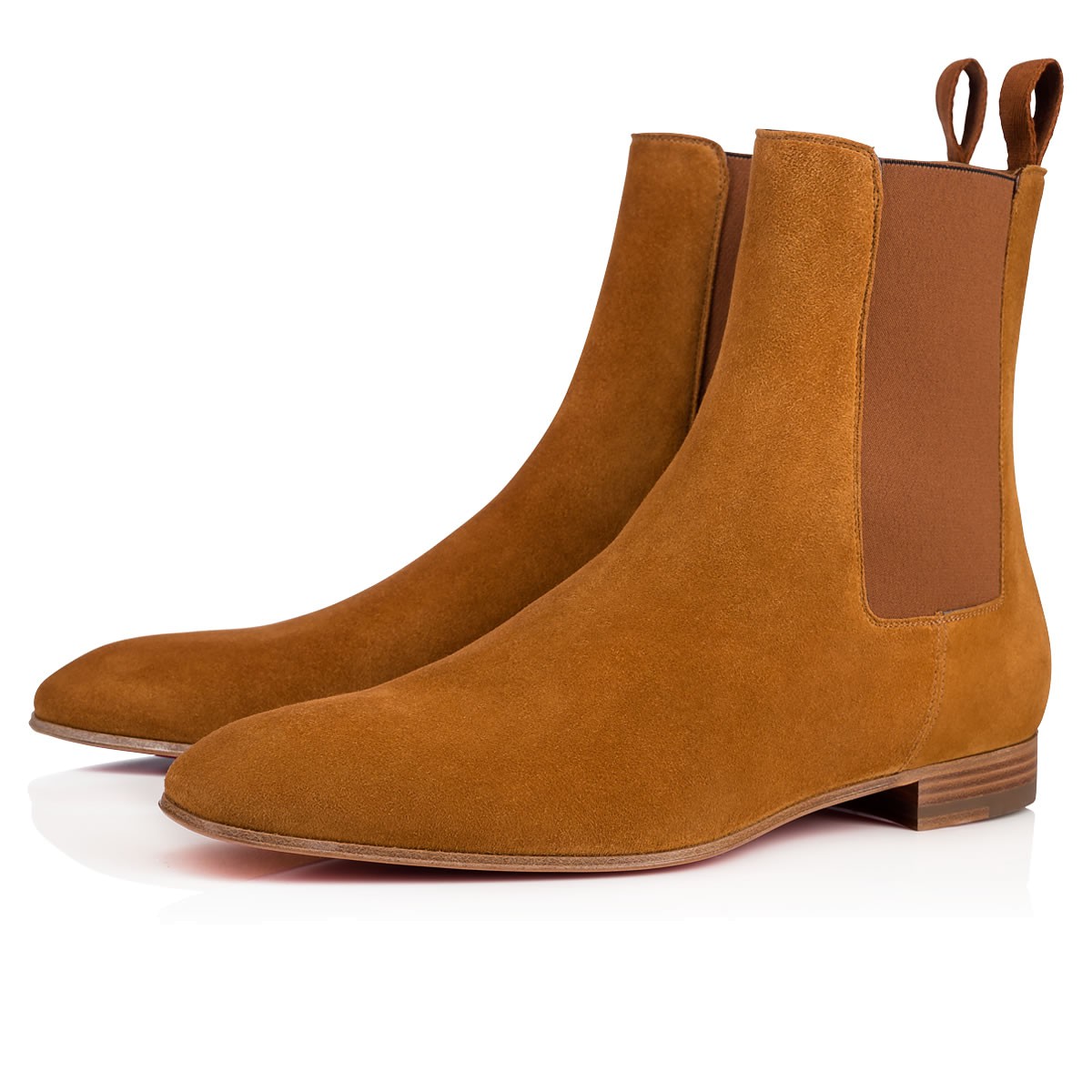 “Roadie” is a refined take on the Chelsea boot. Hugging close to the foot in a sleek, slender fit, this safari suede style adds red sole sophistication to any look.
