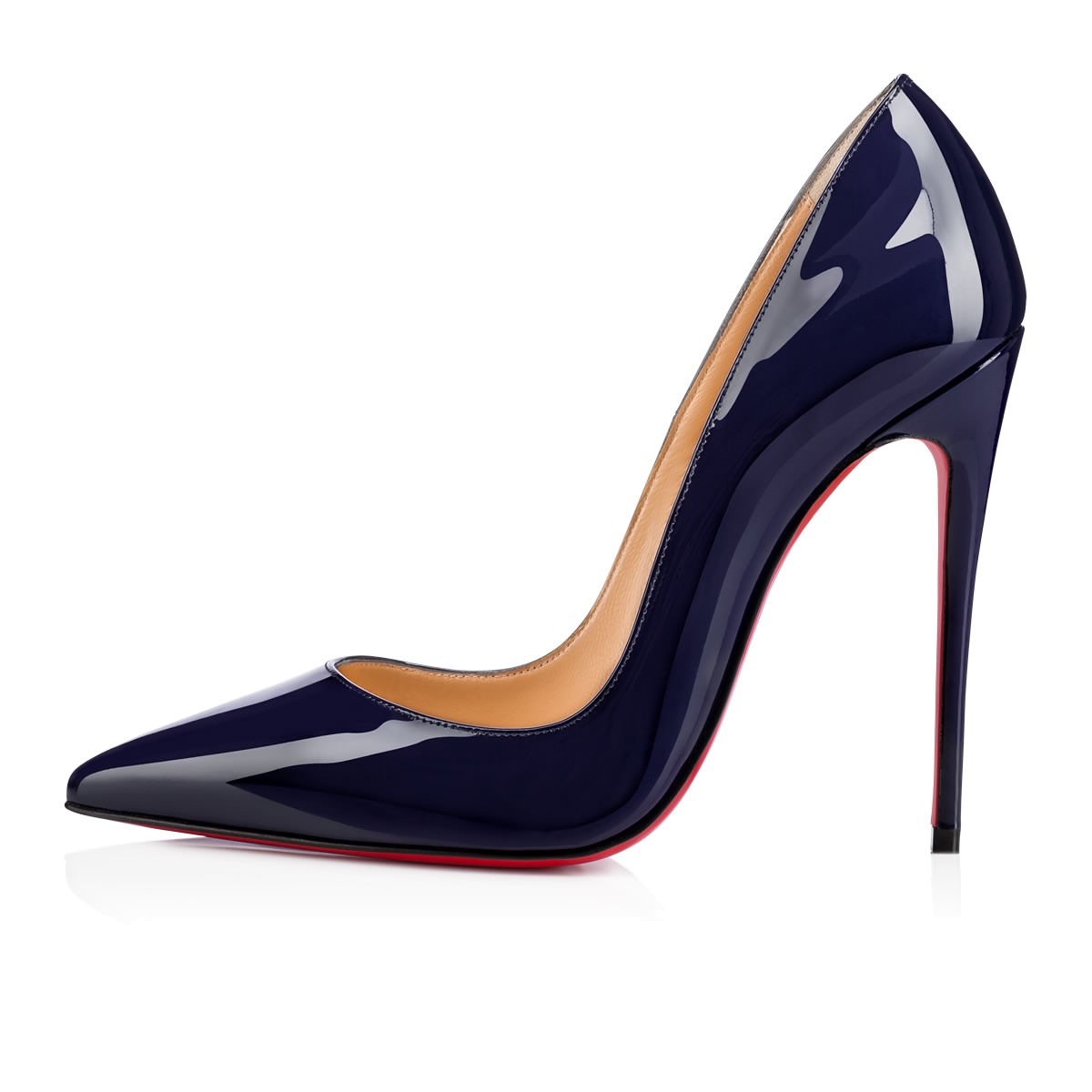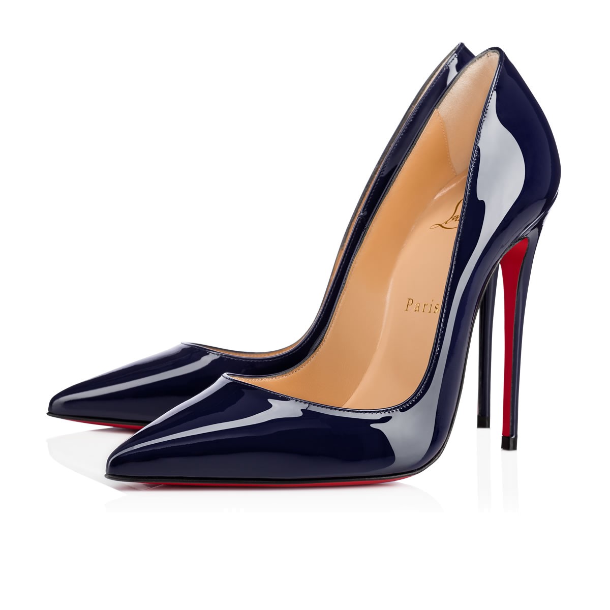 “So Kate” is a Christian Louboutin signature style known for her pointed toe and superfine stiletto heel. At 120mm, this single-sole pump in China blue patent leather is the secret to ensemble perfection.