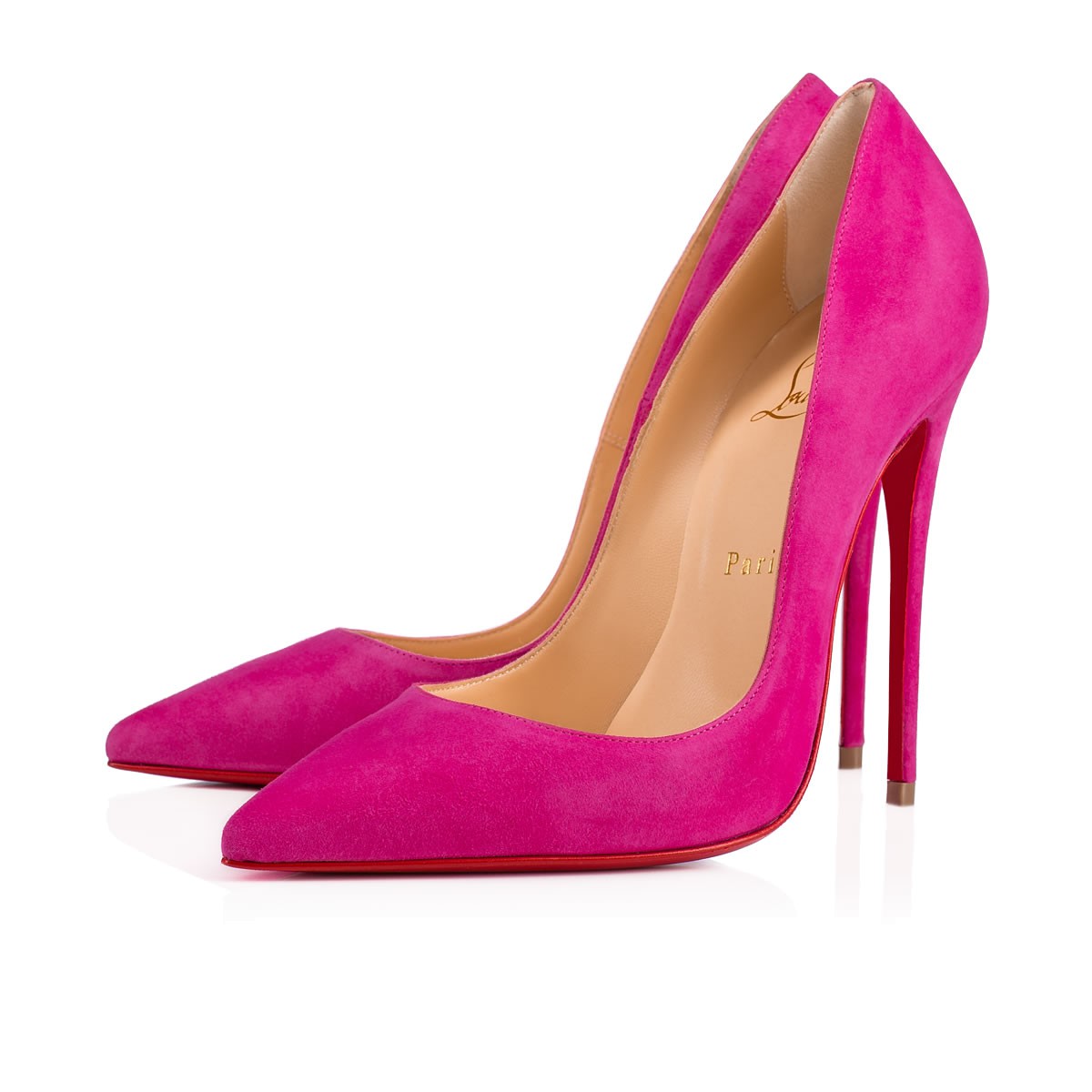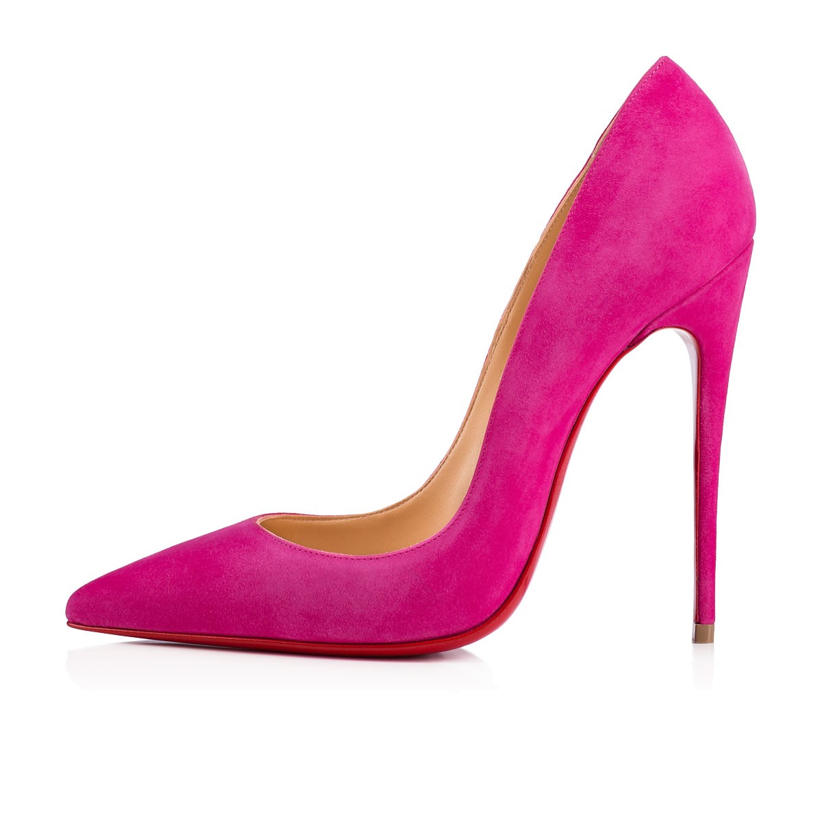 “So Kate” is a Christian Louboutin signature classic known for her pointed toe and superfine stiletto heel. At 120mm, this single-sole pump in ultra rose suede is the secret to statement style perfection.