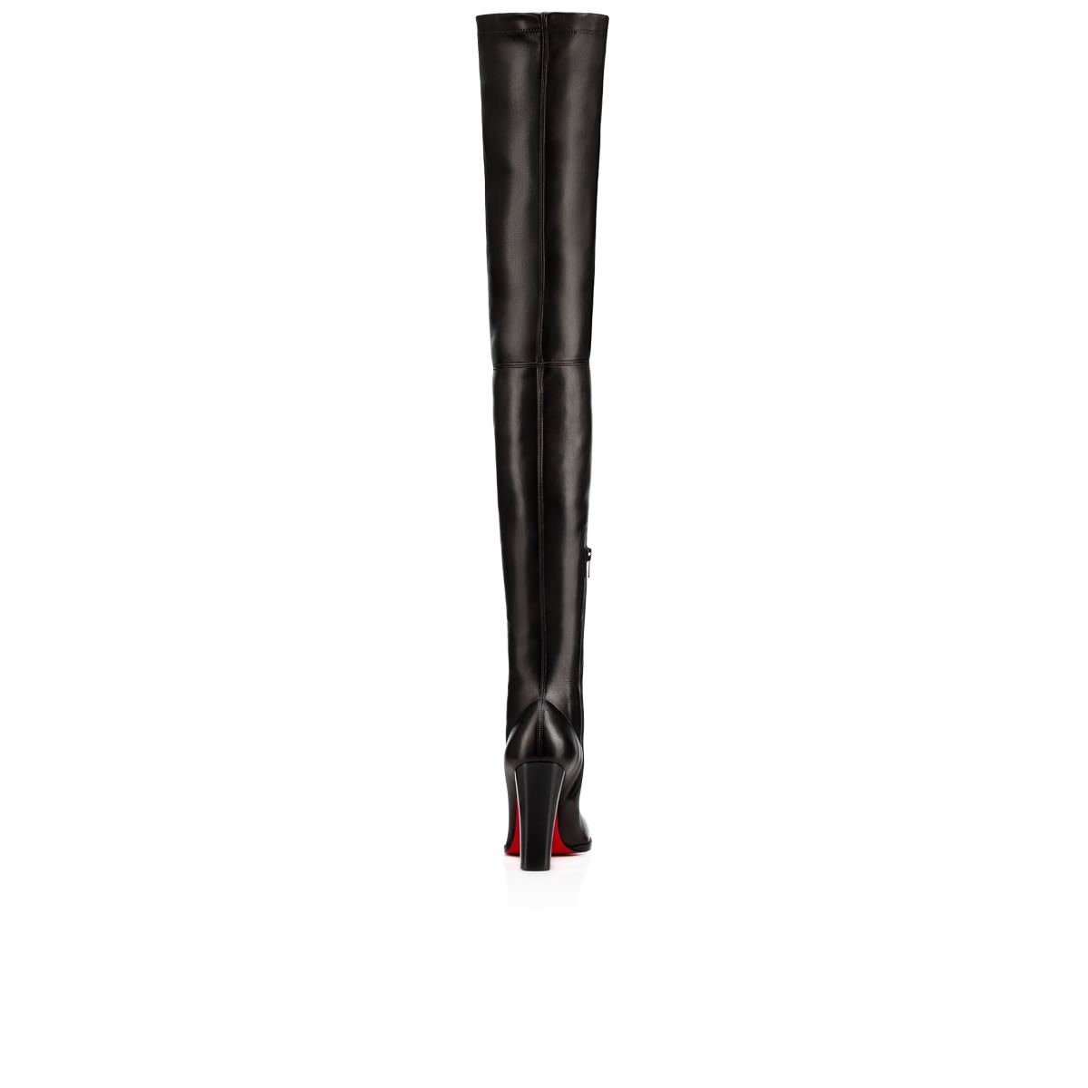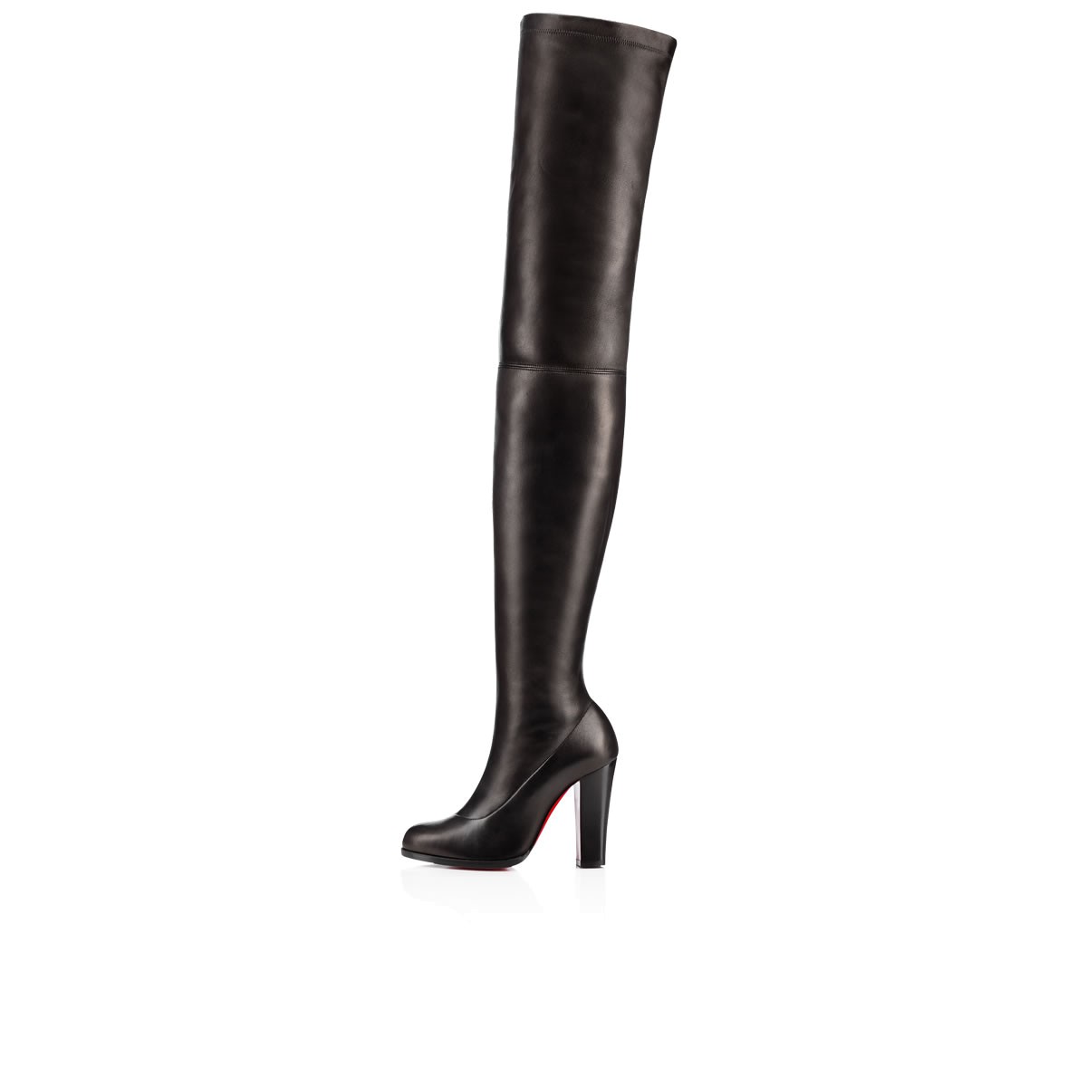 Break in to the thigh-high this season with “Verusch”. In soft and lustrous black stretch leather with a 100mm block heel, this side-zip stunner is a staple look for Fall/Winter.