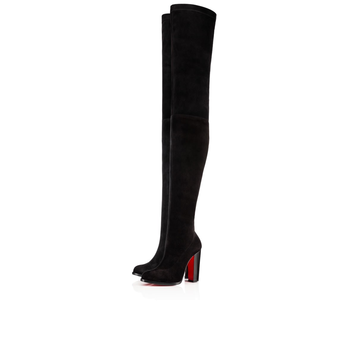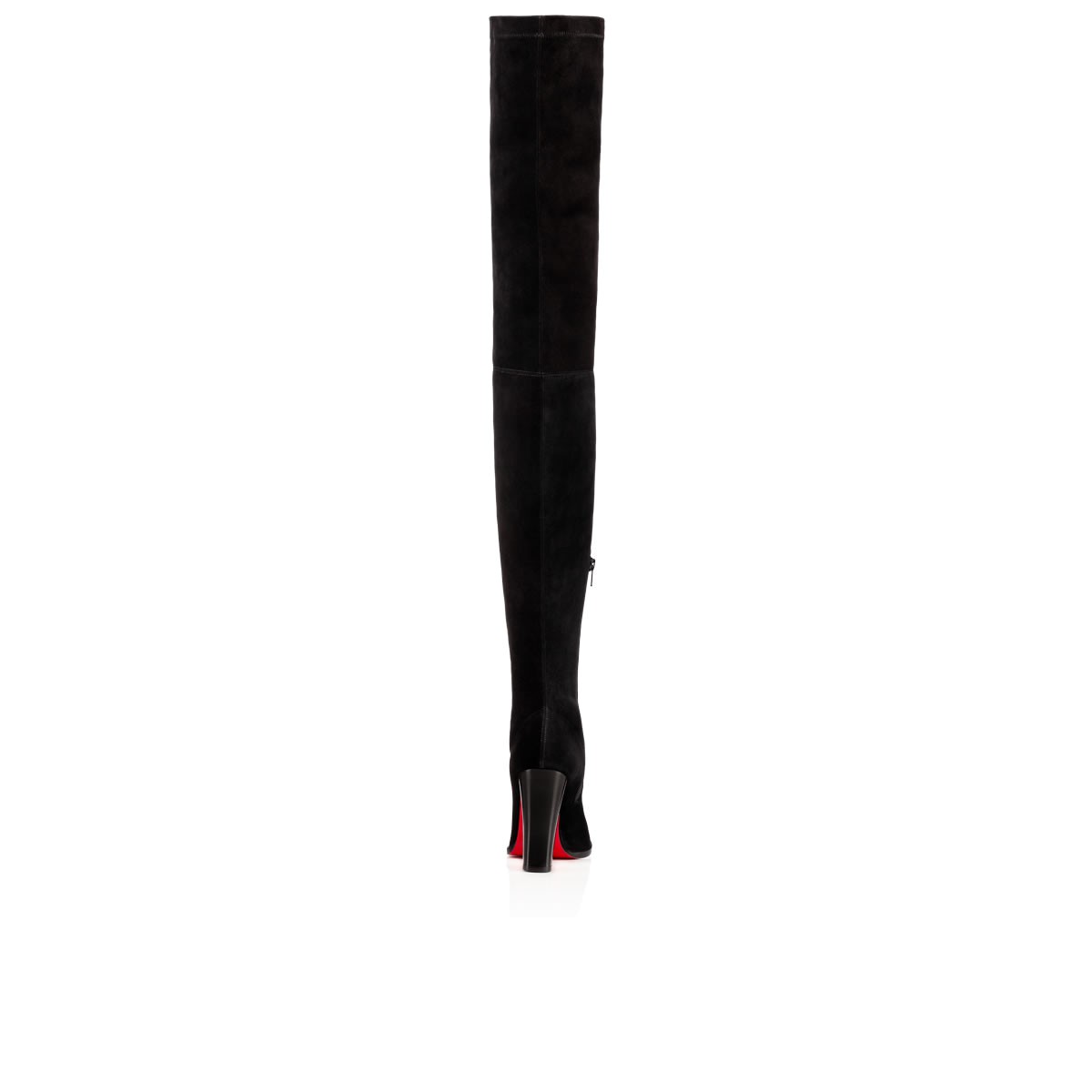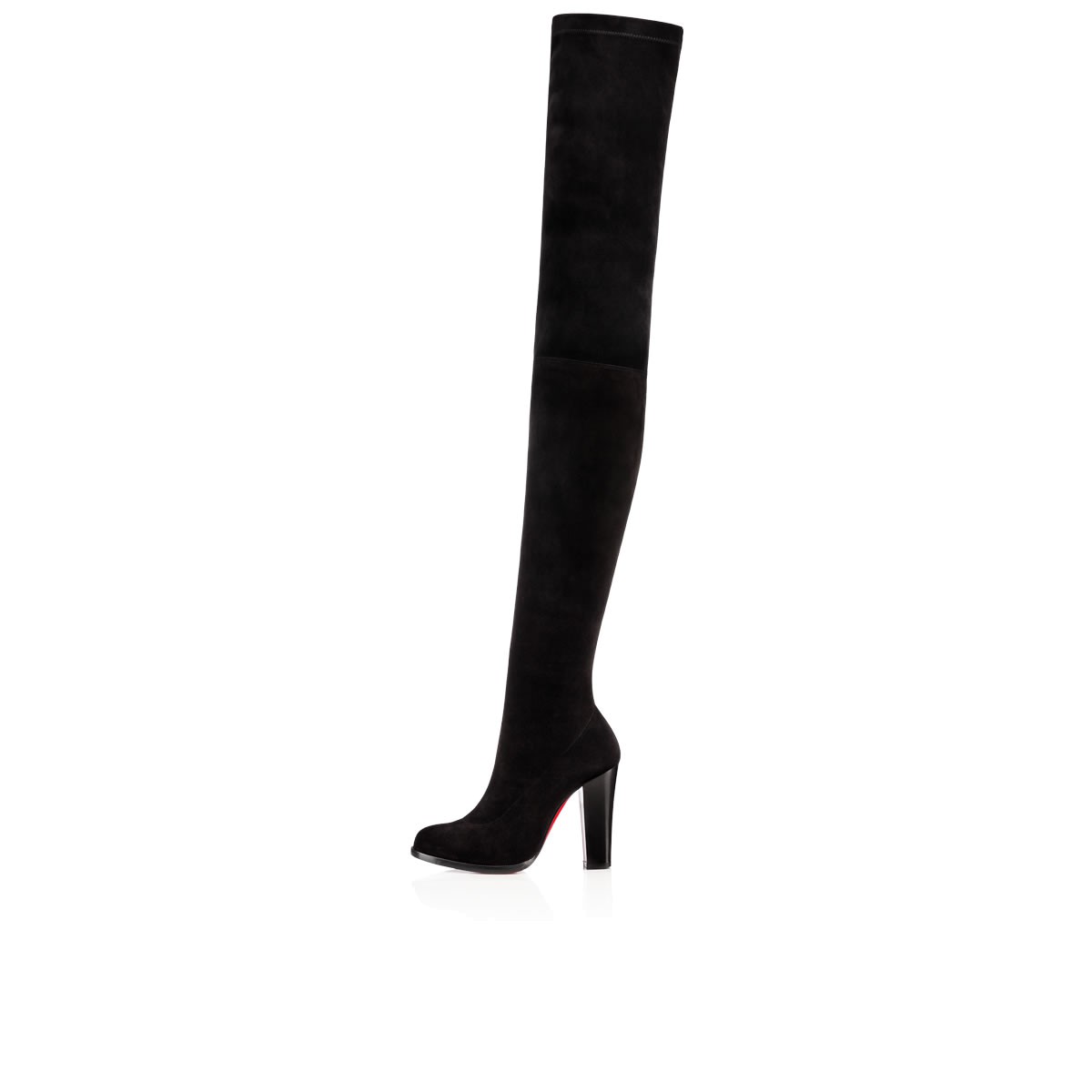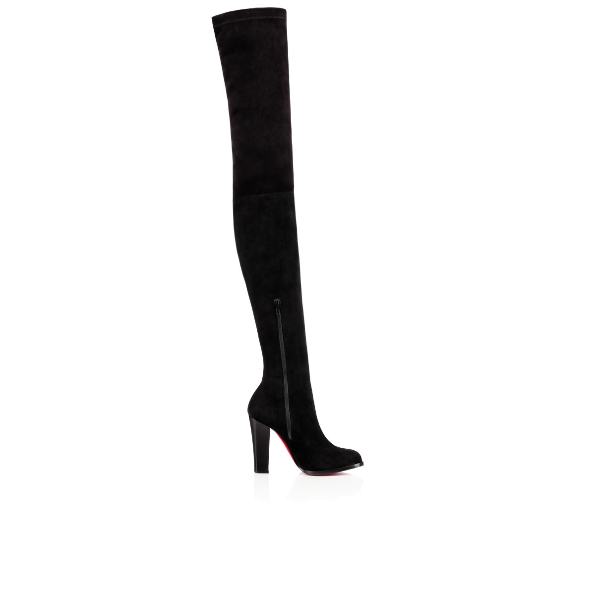 Break in to the thigh-high this season with “Verusch”. In soft black stretch suede with a 100mm block heel, this side-zip stunner is a staple look for Fall/Winter.