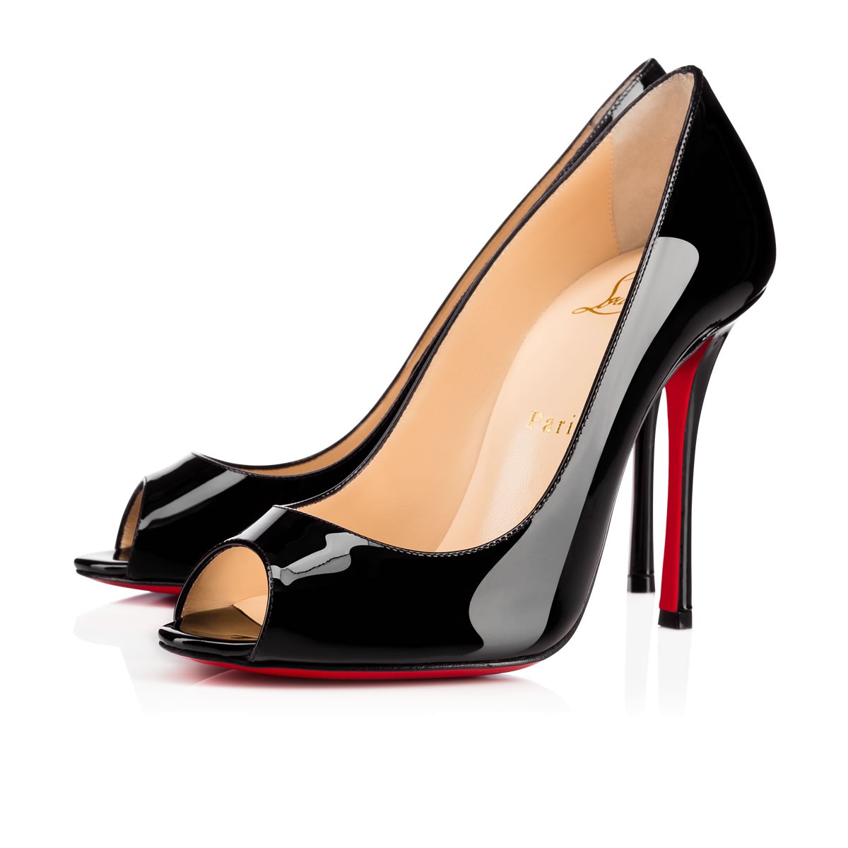 “Yootish” is a sensuous style, built on the classic open-toe “You You” last. Featuring the Louboutin signature 100mm ‘fetish’ heel, this black patent pump is a flirtatious look from daytime to after dark.