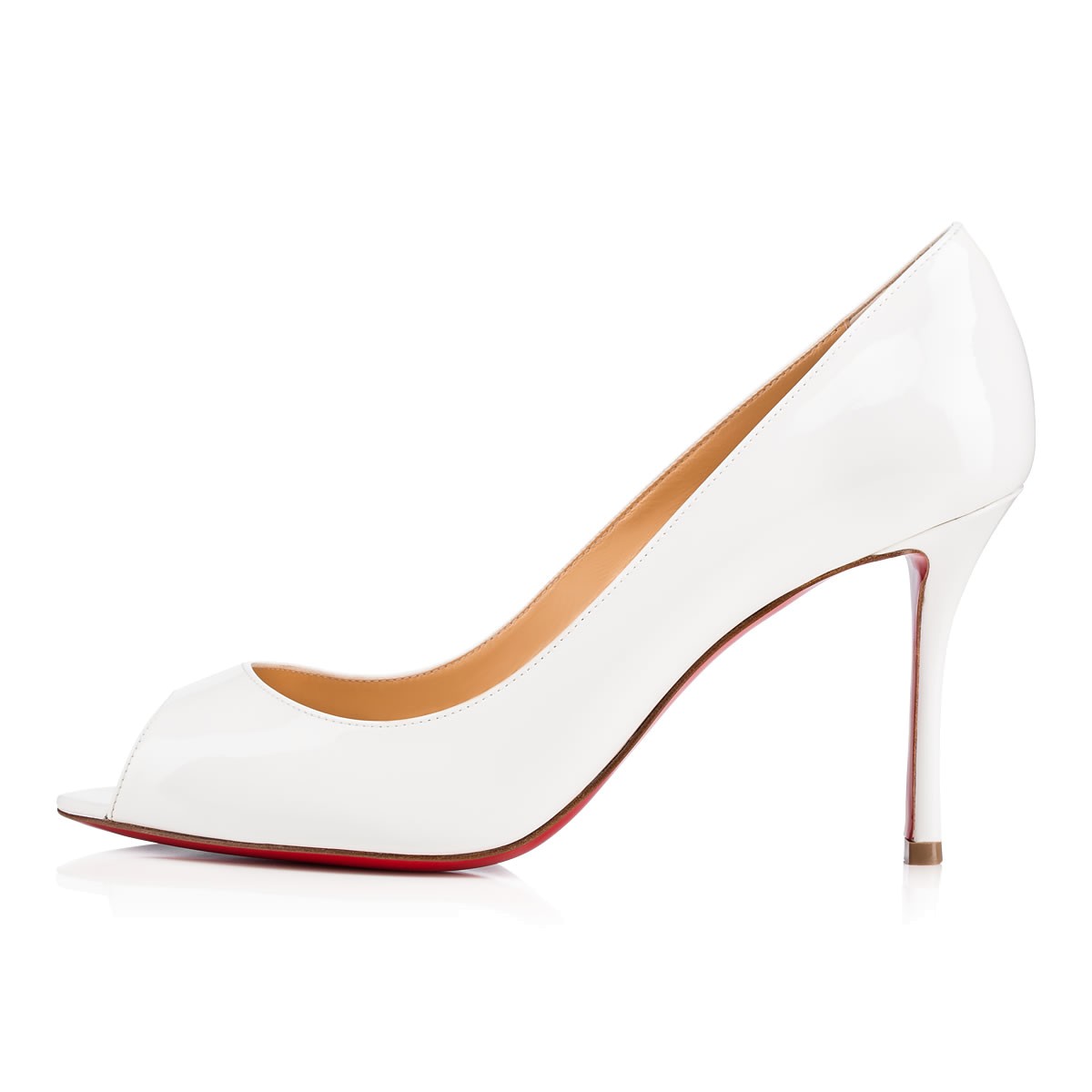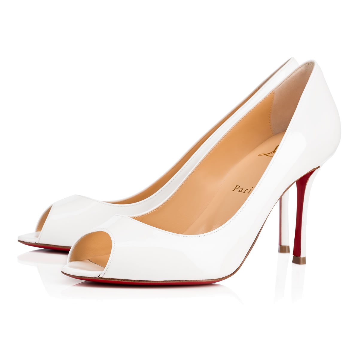 “Yootish” is a sensuous style, built on the classic open-toe “You You” last. Featuring the Louboutin signature 85mm ‘fetish’ heel, this latte patent pump is a flirtatious look from daytime to after dark.