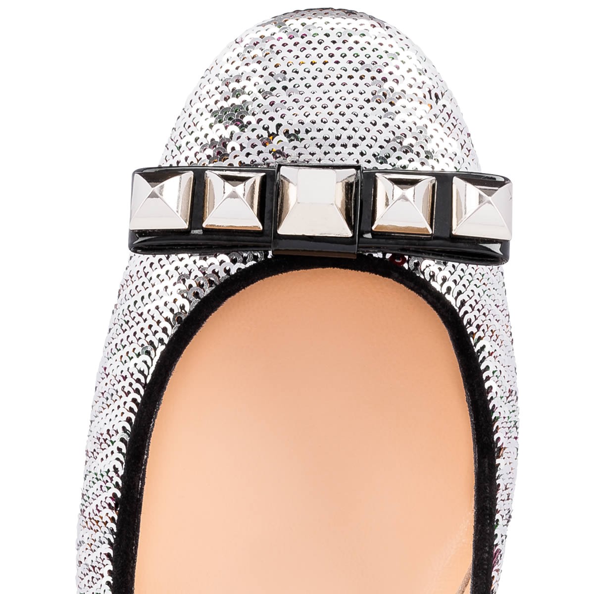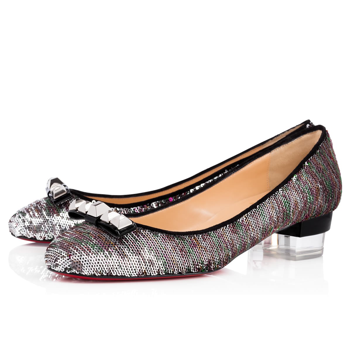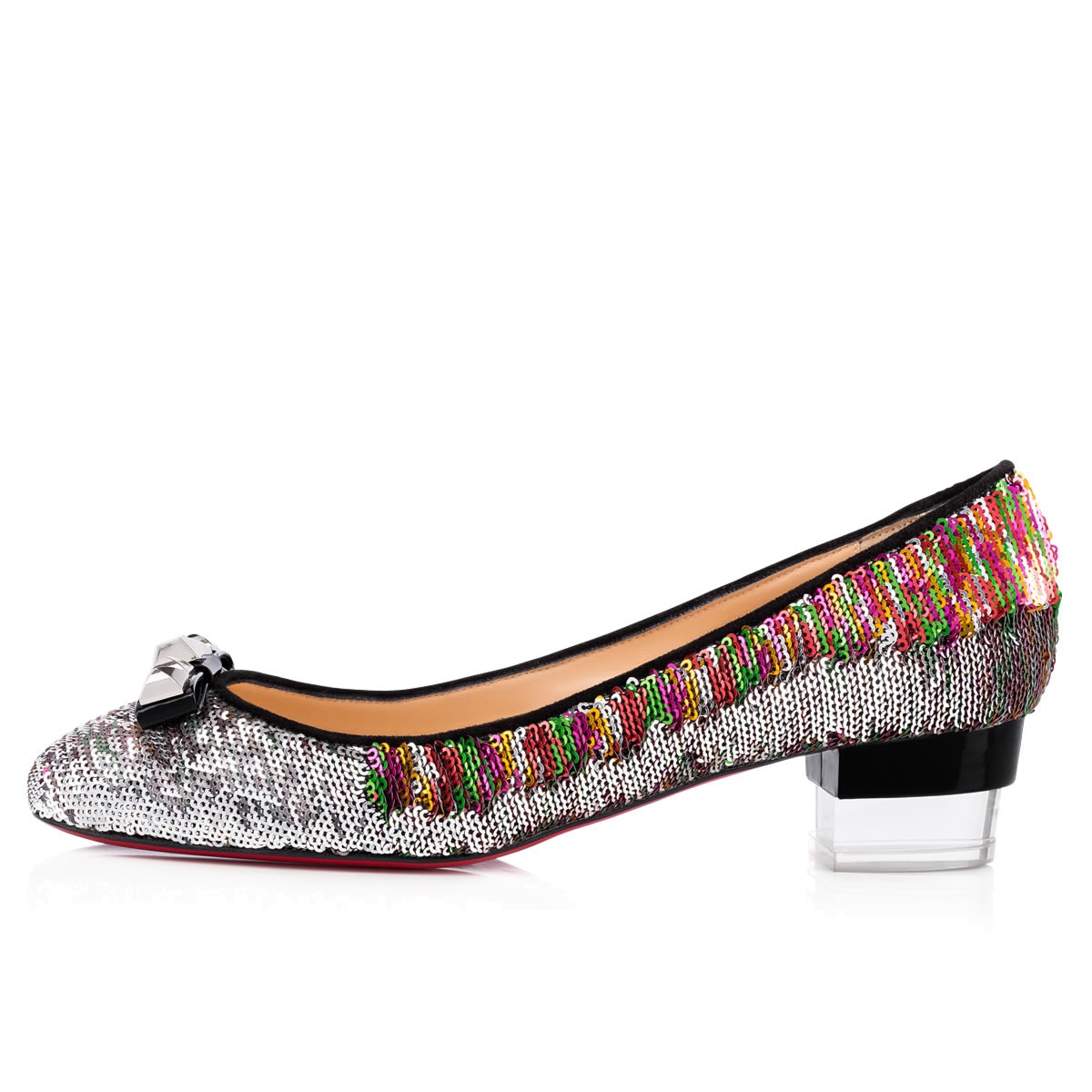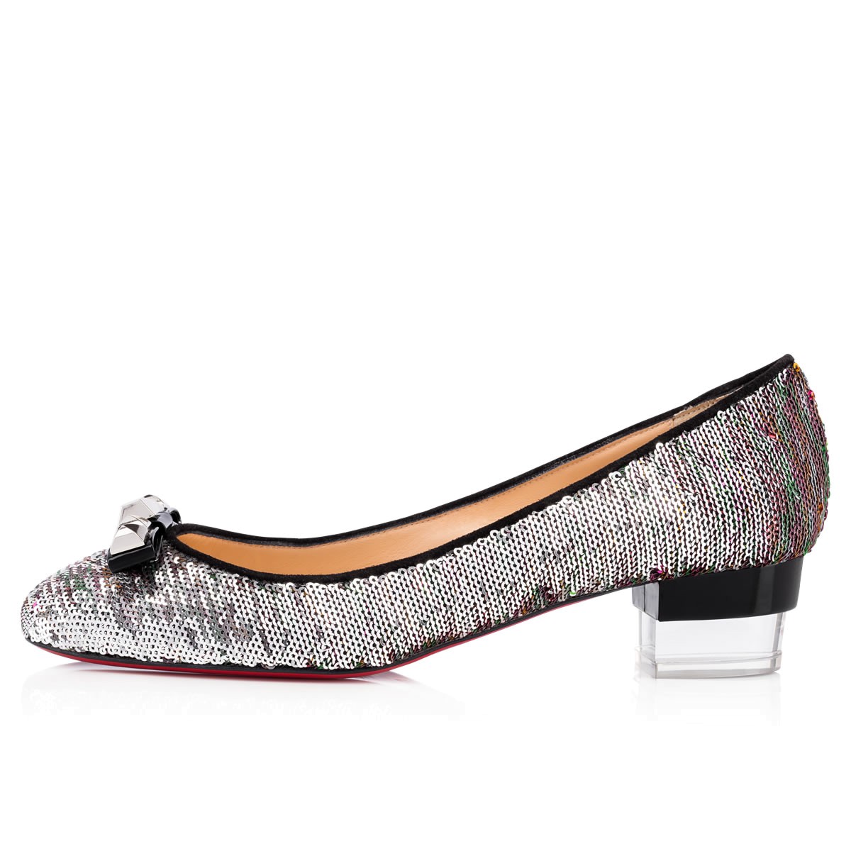 “Zerlisixtyfive” is a chic and demure silhouette with head-turning touches. Featuring a signature studded flat bow and 35mm patent leather & PVC hybrid block heel, this round-toe pump in caress sequins alternates from silver to multicolored (and somewhere in-between) with a gentle graze of the hand.
