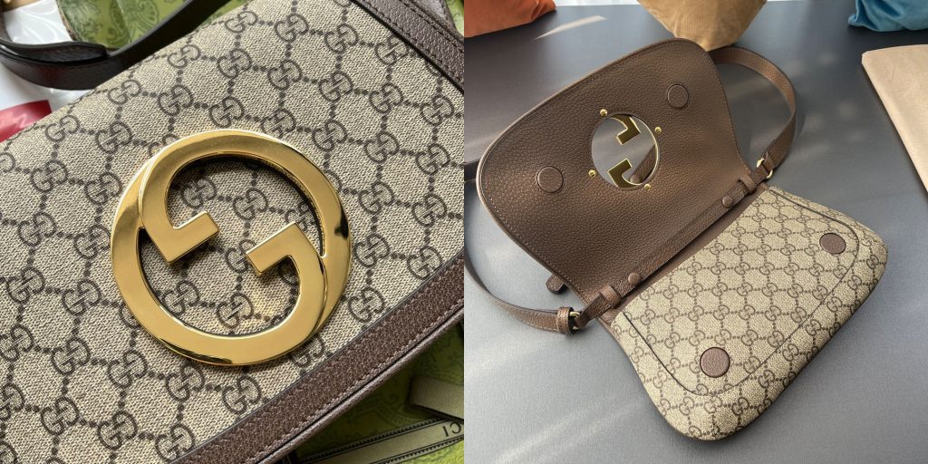 The Closure method of Gucci Blondie shoulder Bag is Magnetic buckle, it have Two Buckles – high safety factor! The Buckles are covered with Leather, not exposed directly. The Workmanship is very fine and durable!