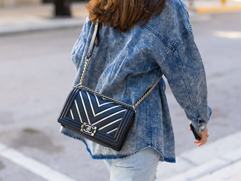Of course, Boy CHANEL bags are still adored by street-style enthusiasts today. Thanks to Karl Lagerfeld’s continuous design of leather variations tailored specifically for the bags season after season, they remain a timeless favorite. From temperature-tested calf leather and rare materials to velvet, suede, diagonal twill, and other fabrics combined with the craftsmanship of embroidery workshops or modern denim or glossy technology – there is an entire range of sizes from small to large. Although it is considered a classic, collectsing all the Boy CHANEL bags is no easy feat.